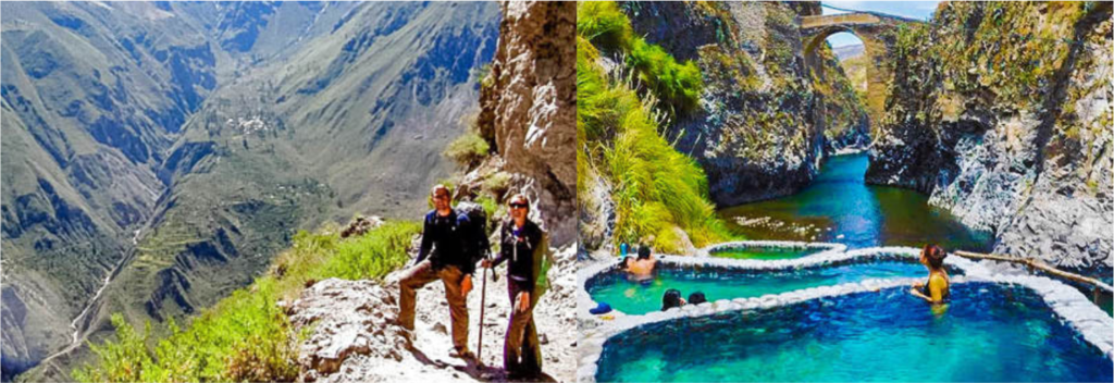 Iniciamos nuestro ascenso a las 5:00 a.m., rumbo al pueblo de Cabanaconde. Desayuno y partida rumbo a Chivay; en el trayecto pararemos en el mirador de Choquetico, visita por los pueblos de Maca, Achoma y Yanque. Arribaremos a Chivay, donde podremos visitar los Baños Termales de la Calera, almuerzo y retorno a la ciudad de Arequipa llegando aproximadamente a las 17:00 horas.