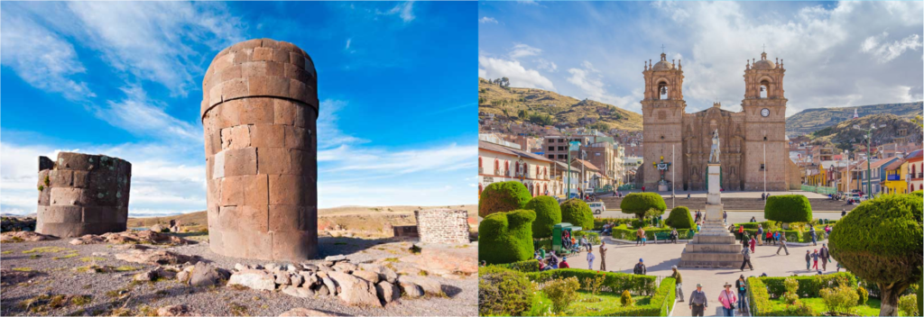 Recojo del hotel 2.00 p.m. en Bus. El viaje dura un aproximado 45 minutos. Se llega a Sillustani donde se observan construcciones arqueológicos de tumbas funerarias de las épocas INKAS Y PRE-INKAS.